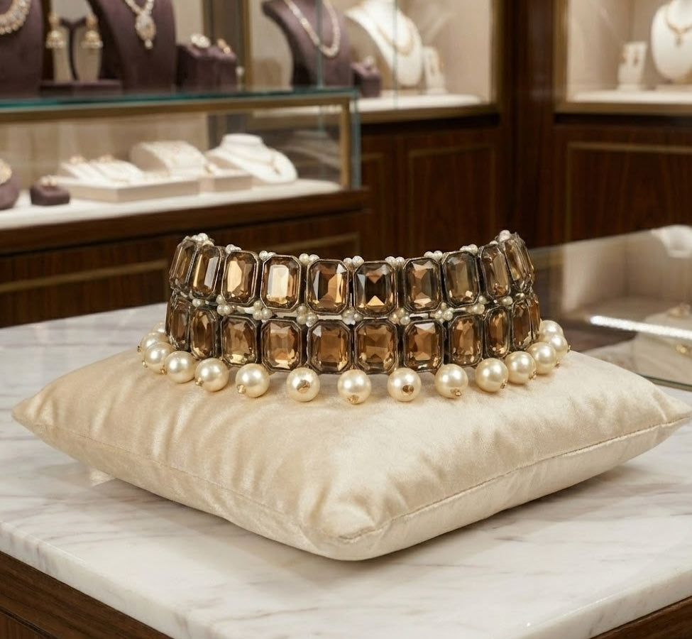 Crystal Choker Necklace with 18K Gold Finish