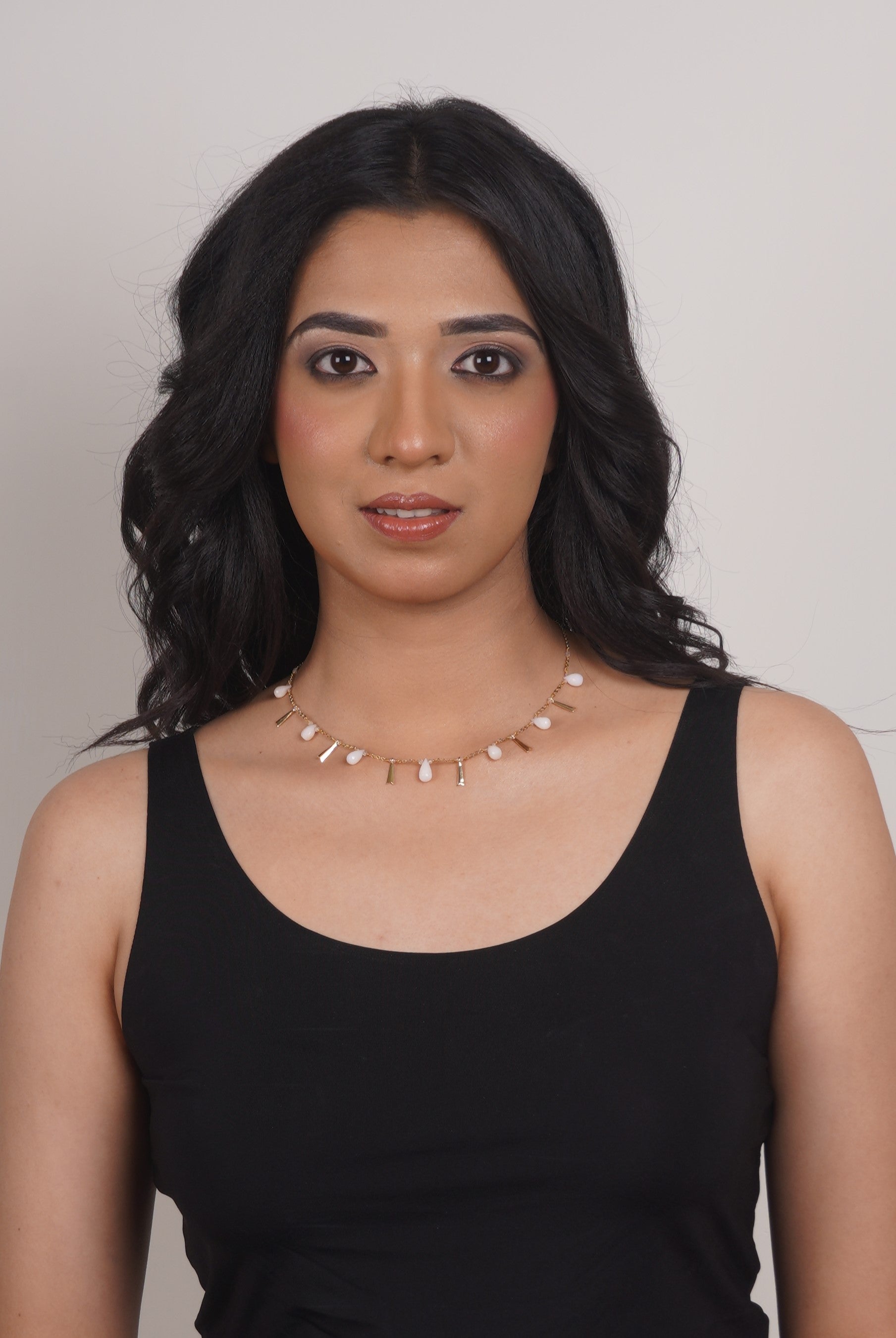 Fine One Necklace - Handmade Pink Opal, Brass, and 18K Gold-Plated Design