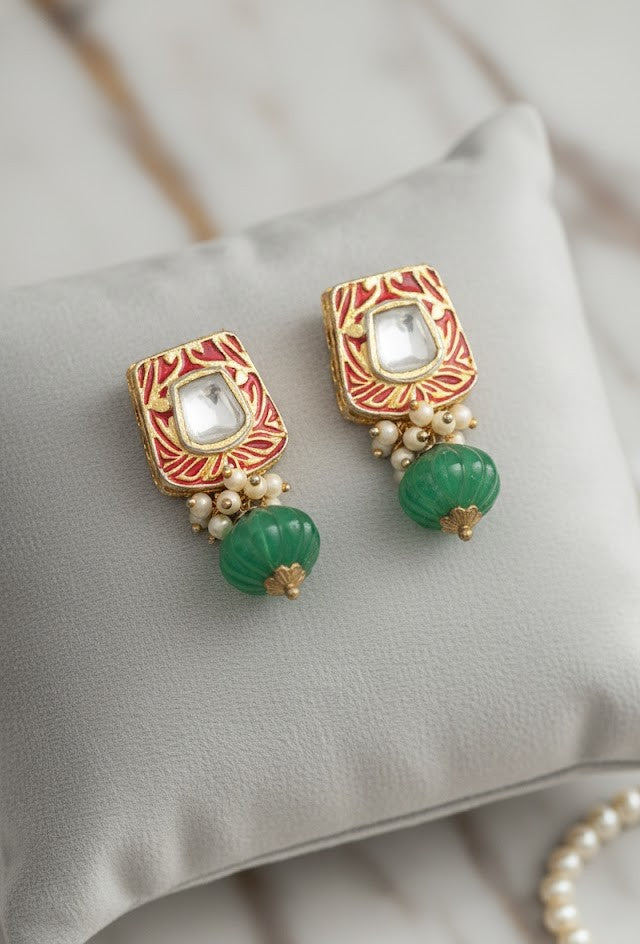 Transform your festive wardrobe with these stunning chandelier earrings, your ultimate accessory for creating an authentic Indian aesthetic. Designed for those special occasions when you want to make a memorable impression, these earrings are the finishing touch that completes your festive vision with undeniable charm.