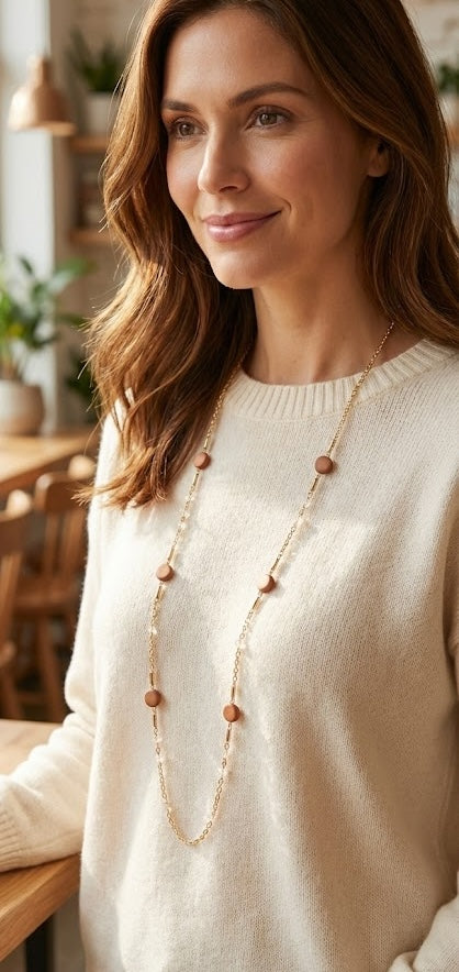 Luminous Labradorite and Coin Shell Long Chain Necklace
