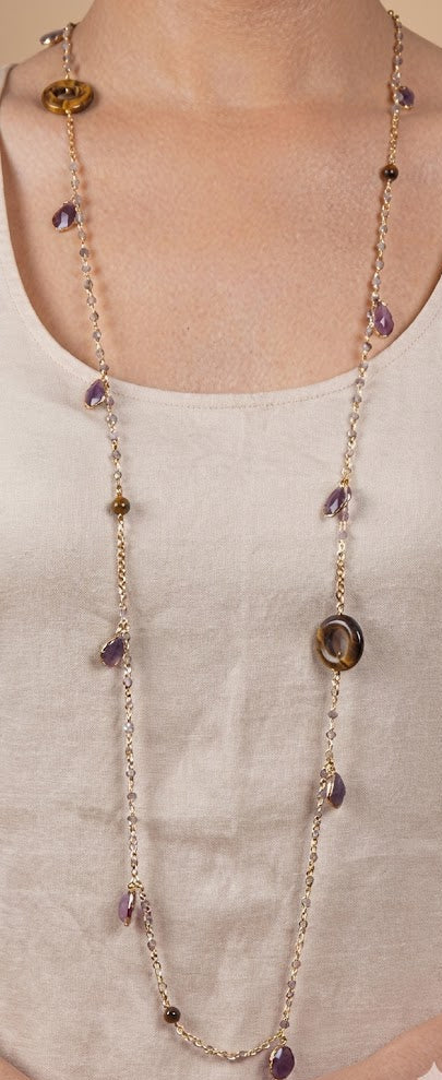 Mystic Gemstone Long Chain Necklace