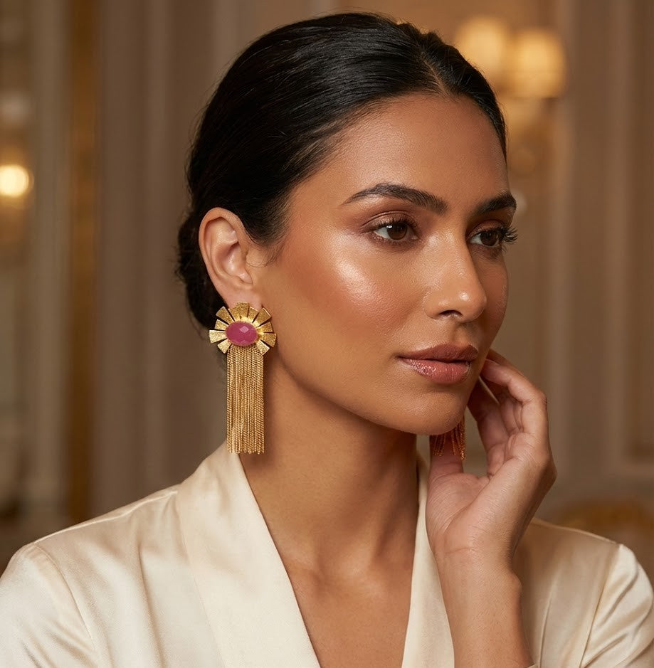 Each piece is handcrafted in small batches using 18K gold plating, premium alloys, and natural or high-quality stones, finished with artisanal detailing—offering durability, exclusivity, and timeless statement value.