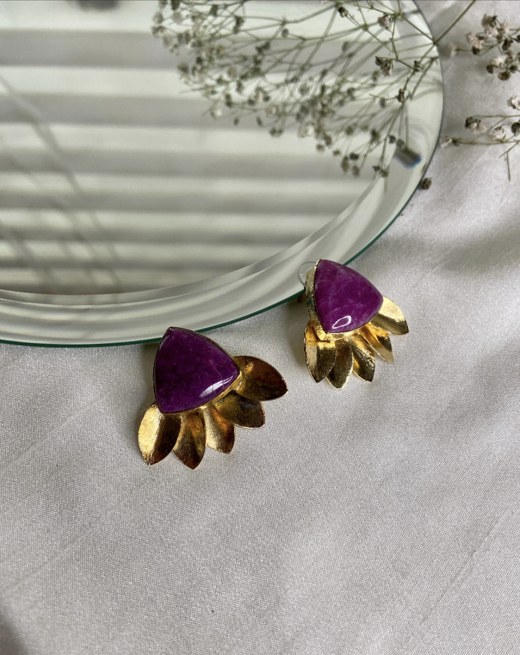 Elegant ruby studs inspired by nature's beauty. Handcrafted with meticulous attention to detail, these versatile earrings seamlessly transition from casual to formal wear. Perfect for those who appreciate organic design and timeless sophistication in their jewelry collection.