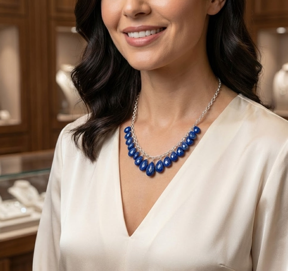 MATERIAL :Handmade in India at a family run factory using silver  &  lapis lazuli stone.