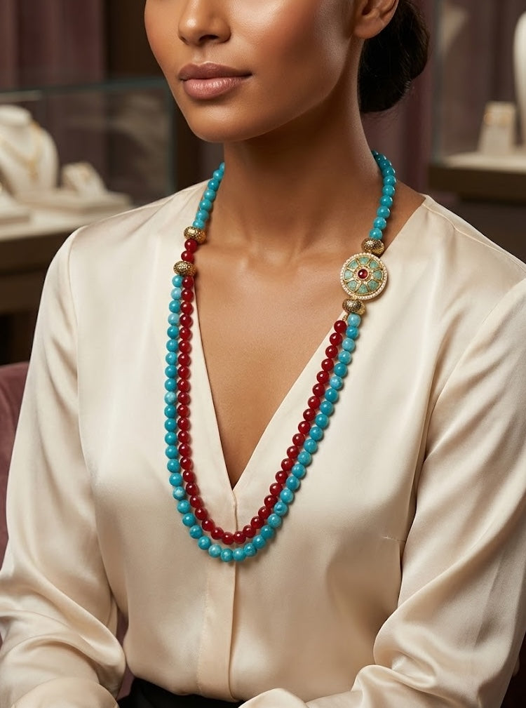 Dressy Necklace to dress up for a festive Indian look to be teamed on anarkali or an off shoulder dress.