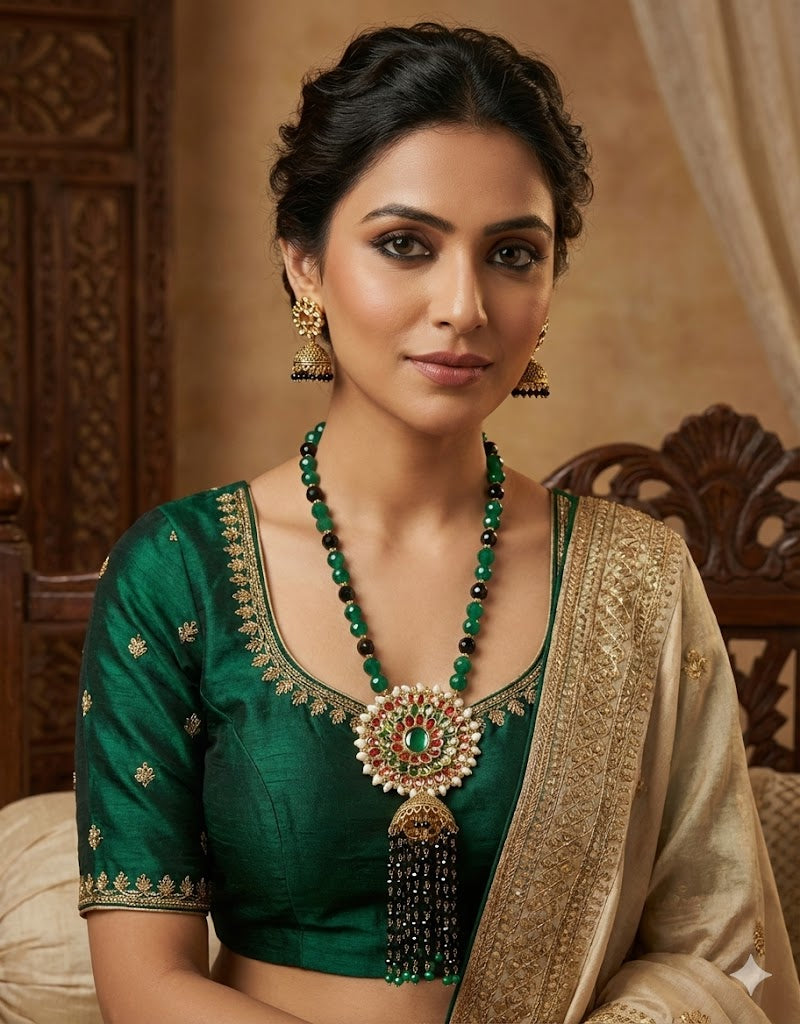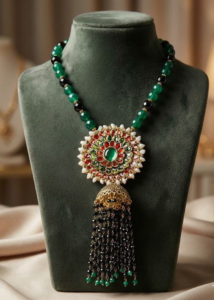 Dressy necklace to dress up for a festive Indian look to be teamed on anarkali or an off shoulder dress.